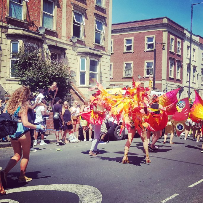 Now Saturday was a glorious day – blazing hot sun, party atmosphere brewing in the air as St Paul’s Carnival returned after it’s three-year hiatus for it’s 50th anniversary. It had not taken place since I moved to Bristol, so it was definitely on the cards for me. Prior to that, I had made plans with a friend to go and watch the England game (and what a game it was!) at his friends’. So, I set off to the casa, which was situated in the carnival hype anyway, and decided to take a bit longer to get there. I wanted to see this, for myself, and by myself – and I knew they weren’t budging on account of the impending match anyway. Oh I loved it – everyone was out in their best festival-type summer outfits, people had all these glittery designs on their faces and funky, colourful things in their hair. Kids were eating ice creams, people were blowing whistles and every last person was hella sweaty. It really was a hot-ass day. The anticipation was brewing as the parade was delayed for some reason so we were all waiting. I walked around surprisingly calmly and slowly through all the people, just absorbing the positive energy, as opposed to interpreting it as chaotic. That came later.
